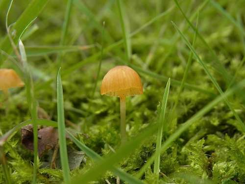 梅雨から秋にかけて林や庭のコケ類の間に発生する小型のキノコ。全國に生育する。傘は直徑5~10程度でオレンジから橙黃色。ひだは白色。鐘形からまんじゅう形でのちに開き中央がやや凹む。柄は傘と同色。食用不可。