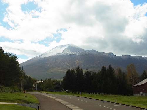 他のスタッフが現地案內所を取材している間、周辺を散策することにしました。現地案內所は開けたエリアにあるので、周囲の山々を見渡すことができます。南に見える巖手山の上空は風がかなり強いようで、雪を冠った頂上付近を次から次へと雲が流れて行きます。西に目を向けると八幡平の上空も雲が多く青空は見え隠れしていましたが、流れの早い雲の影で山肌の色が次々と変わるので、しばらくの間眺めてしまいました。