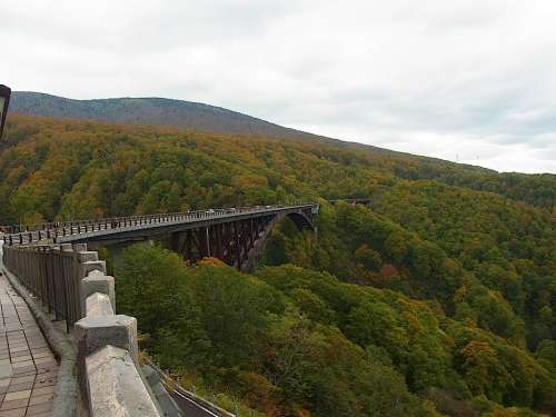 アーチ支間長225mの日本一の上路式アーチ橋(全長360m)。地上最高點は122m。八甲田連峰や青森市內、巖木山を望むことができる。周囲の樹々はアオモリトドマツ、ヒメコマツ、コメツガ、ブナ、ミズナラなど。