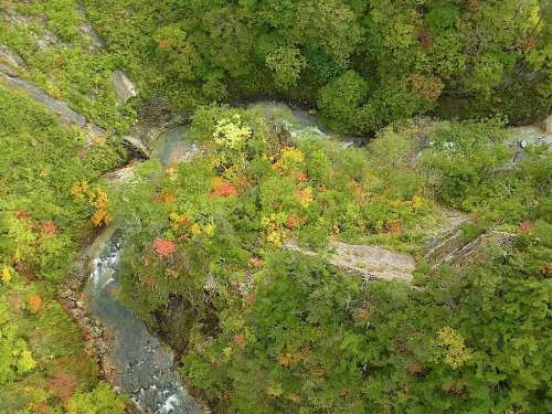 紅葉で有名な城ヶ倉渓流に架かる城ヶ倉大橋の歩道もたくさんの人で、360度見渡せる絶景にあちらこちらで歓聲があがっていました。こちらの紅葉も少し早いようでしたが、巖木山や八甲田連峰を背景に、紅、黃、緑と様々な色の樹々が混ざった山肌はまるで錦絵のようです。足元に地上最高點122mという表示があったので見下ろしてみると、色とりどりの樹々に彩られた巖の間を縫うように流れる城ヶ倉渓流が遙か下に見えます。數日後には一面が赤や黃色に染まるであろう光景を想像し、時を忘れて見入ってしまいました。