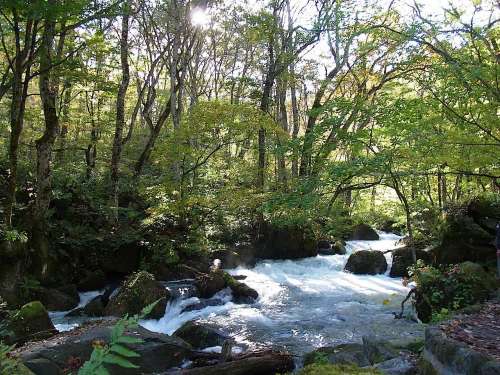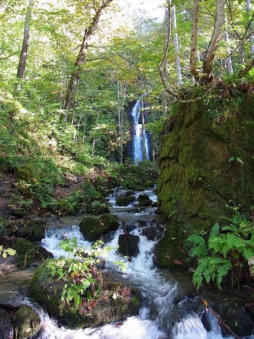奧入瀬の中では一番激しいといわれる流れ。苔むした巖や樹々の間を勢い良く流れる水が作り出す景観は、テレビや寫真などでもよく紹介されるスポット。