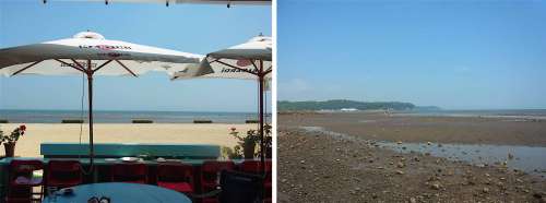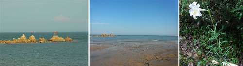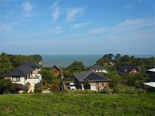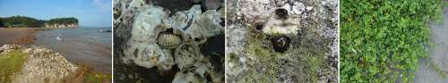 ■左:分譲地內の浜 別府灣に突き出た権現鼻と加貫鼻の間に広がる約800mの砂浜と巖場。東に向いているので日の出と月の出を見ることができる。(寫真は権現鼻) ■左中:ヒザラガイ(膝皿貝) 別名ジイガセ クサズリガイ科ヒザラガイ屬 北海道南部から奄美諸島の潮間帯の巖などで吸著し生活する原始的な軟體動物。雌雄異體。8枚の殻板を持つ。巖などにはりつき、潮が満ちると動き出して藻などを食べる。はがすとアルマジロのように丸まる。姿が膝に似ていることからついた名。食用可。 ■右中:タテジマイソギンチャク(縦縞磯巾著) タテジマイソギンチャク科タテジマイソギンチャク屬 日本各地の內灣の潮間帯の巖礁や淡水の混ざる汽水域の砂泥地などに生息する小型のイソギンチャク。暗褐色や暗緑色の體壁に黃色やオレンジ色の縦縞が入る。名前はここからついた。個體変異があり縦縞のないものもある。水の中で淡い褐色の觸手を伸ばす。無性生殖で分裂によって殖える。 ■右:ハマヒルガオ(浜晝顔) ヒルガオ科ヒルガオ屬 日本全土の海岸の砂浜に生育するつる性多年草。葉の形はハート形に近く肉厚で光沢がある。5~6月に淡紅色でアサガオのようなろうと形の花をつける。砂中に地下莖を伸ばし繁殖するので群落を作ることが多い。海岸に生えヒルガオの花に似ていることからついた名。