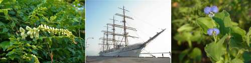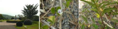 続いてロイヤルシティ別府灣杵築リゾートの魅力のひとつである浜に向かいました。権現鼻と加貫鼻の間に広がるプライベートビーチのような浜を歩き、貝や流れ著いた海藻などを見るのが毎回楽しみです。潮が引いた砂浜の所々に顔を出した巖にヒザラガイやイワガキなどがたくさんついていました。その間につやつやした飴玉のようなものも。干潮時なのでしぼんでいるイソギンチャクです。オレンジ色の筋があるのでタテジマイソギンチャクでしょうか。砂の上には海浜植物のハマヒルガオが緑の葉を広げ、ツルナとハマナデシコが小さな花をつけていました。崖に生えたトベラには丸い実がつき、その下ではベニバナボロギクやママコノシリヌグイの花も咲いていました。 この時期だとナンバンギセルとタヌキマメの花が見られるかもしれない、と以前見たことがある海辺を離れた場所に行くと、道沿いの草の間にタヌキマメの花が咲いていました。殘念ながらナンバンギセルはみつけられませんでしたが、今年もタヌキの尻尾のように毛がふさふさしたユニークな形のタヌキマメの萼を見ることができホッとしました。別府灣に向かって広がる分譲地は、約800m続く靜かな砂浜の他にも高臺から遠く四國まで望むことができる海、その豊かな海を守りための魚つき保安林など、様々な自然を味わうことができます。