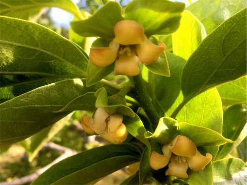 いまの時期は、薄黃色い柿の花が綺麗にほころんでいます。これがいずれ実になる訳ですね。