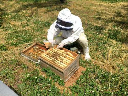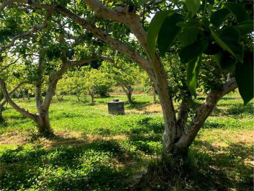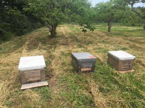 菜夢來さんでは養蜂業者にお願いして、ミツバチの巣箱を柿の畑に置いています。都會ではミツバチの絶滅が問題視されていますが、地方の農場でも自然の摂理に任せた受粉は風前の燈火のようです。気になって調べてみたのですが、いまはどこの果樹園でもミツバチを放園しているのですね。
