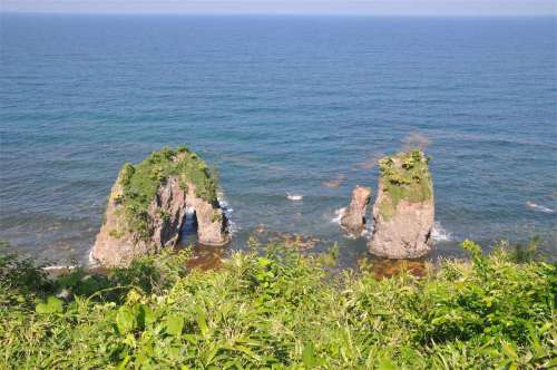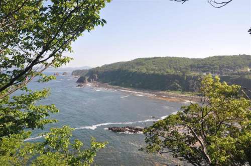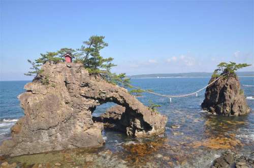 豬ノ鼻のすぐそばに國道249號線が走っています。海伝いのこの道を「世界一長いベンチ」に向かって行くと、「夫婦巖」と「機織り巖」という奇巖があなたを待っています。