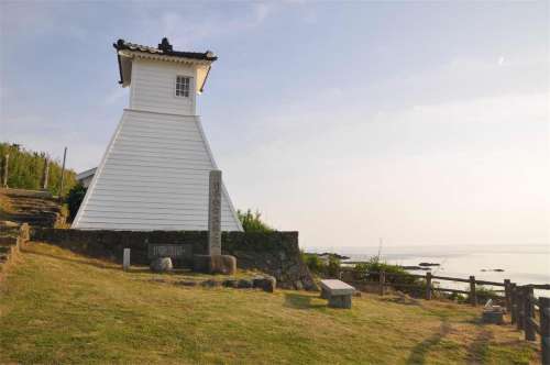 この燈臺は現存する日本最古の木造燈臺で、北前船の寄港地として栄えた福浦の歴史を感じさせてくれます。ただ燈臺としては珍しく、ひじょうに狹い生活道路を抜けた岬の先に立っています。燈臺の周辺には狹い畑が點在していて、あまり観光名所らしくありません。周辺環境も含めて味のある施設だと思いました。