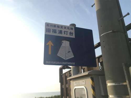 風力発電所を通り過ぎ、そのまま海に向かいます。入り組んだ福浦港の傾斜地を下ったり上ったりすると、「福浦燈臺」のサインが掲げられています。