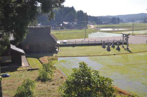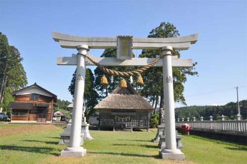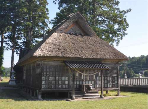 まずは、茅葺きの拝殿をもつ「松尾神社」です。緑豊かな地域のなかに佇む落ち著いた神社です。この建物は石川県の重要文化財建造物に指定されているのだとか。創建は室町時代だそうですが、もしかしたら創建當時の形を留めているのでしょうか?