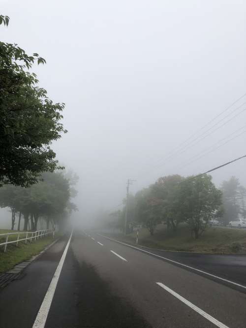 曇りや雨で、霧が立ち込めると、わずか先も真っ白で、視界不良になります。寫真は、鹿部リゾート近くで撮影したものです。