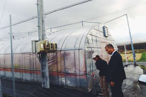 寫真手前が武田さん、奧がバジルのビニールハウスを管理されている尾友さんです。