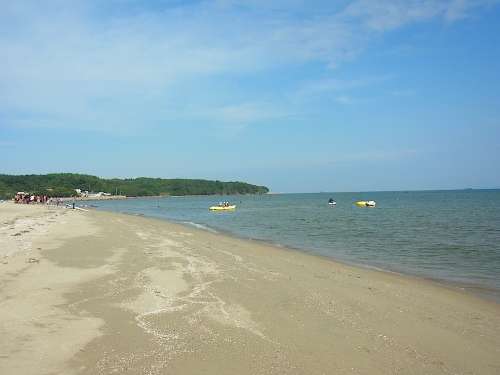 最後は大分空港に向かう途中にある住吉浜リゾートパークへ。海岸流などによって運ばれた砂礫が細長く堆積した砂嘴(さし)と呼ばれる一帯は、ホテルやゴルフ場、マリンスポーツが楽しめる施設などが整備されています。この日は大學のサークルと思われる団體が砂浜でピーチバレーをしたり、バナナボートに乗ったりと夏休み最後の週末を楽しむ姿が見られました。 波打ち際のテトラポットの間を覗くと、すばしこいフナムシは一斉に隠れてしまいましたが、カメノテやムラサキインコガイ、クロフジツボなど磯の生物の代表選手達は固著動物なのでゆっくり観察することができます。すぐ橫で絆創膏のように張り付いているヒザラガイも動きそうには見えませんが、こちらは潮が満ちると歩き回るそうです。これらは食べられますが、どれも食べるには勇気が必要ですね。砂嘴の先端には周りにワシントンヤシやハマオモトなどが植えられた南國ムードたっぷりの白いチャペルがあります。住吉浜は美しい夕陽を見ることができるそうですが、夕陽にはまだ早く、陽を受けて白く光る海に赤い燈標が立っていました。