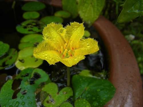 ■左:オーナー様のお庭 林の濃い緑を背景に、ナツツバキ(シャラノキ)やコニファー、ギンヨウアカシア(ミモザ)、ユーカリなど様々な緑の間から見えるログハウスが印象的な庭。株元はギョリュウバイやギボウシなどたくさんの草木で覆われている。寫真の右側に建つ母屋の前にはトマトなどの野菜も。華やかな色彩に包まれるギンヨウアカシアが咲く頃にもう一度訪ねてみたい。 ■右:アサザ(莕菜、瀇菜、淺々菜、淺沙、阿佐佐)ミツガシワ科アサザ屬 本州から九州の池や沼などに生育する多年草の水草。浮葉性植物。スイレンに似た葉を水面に浮かべる。6~8月、5深裂し縁が細かく裂けた黃色い花が水面上に立ち上がる?;à铣_き午後には閉じる。水深の淺い場所に生え葉や莖が食用になることからついた名。莕菜は中國名。
