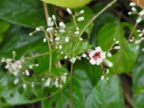 周辺を歩いていると葉にコブができているケヤキがありました。アブラムシの仲間のケヤキヒトスジワタムシが作った蟲こぶ(ケヤキハフクロフシ)です。近くの幹に生えたアラゲキクラゲは雨に打たれて生き生きしているように見えます。觸ってみるとプルプルと弾力がありました。この時期、草むらやフェンスなどに絡まって小さな花をつけているのはヘクソカズラです?;à颏瑜姢毪让挨砂毪摔胜盲皮筏蓼Δ瑜Δ士蓯郅ぷ摔颏筏皮い蓼?。ただし傷をつけたり揉んだりすると名前がついたのが納得できるような悪臭がするので、見るだけにしておいたほうがいいですね。雨が強くなりゴンズイの赤い実やヌルデのつぼみから雨の雫が滴り落ちます。傘をさしているのでついつい視線は足元に。すると草むらの中にぽつぽつとタヌキマメが生えているのをみつけました。毛むくじゃらの萼を閉じた様子はちょうど雨に濡れた貍のしっぽのようです。近くではオオニシキソウが小さな花と実をつけていました。