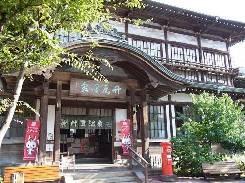 ■竹瓦溫泉 明治12年に創設された市営の共同浴場。現在の建物は昭和13年に建設された唐破風造(からはふづくり)の豪華な屋根だが、創設當時は竹屋根、その後瓦屋根に改修されたことから竹瓦溫泉と名付けられたという。早朝から営業され中には砂湯もある。登録無形文化財。向かいにある大正10年完成の竹瓦小路アーケード(現存する最古のアーケード)と共に近代産業遺産にも登録されている。