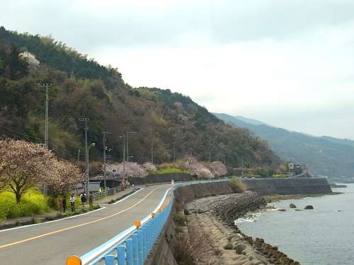 今回は一般道を走ることになりました。瀬戸內海沿いの道は夕陽が美しく、『ゆうやけこやけライン』と呼ばれています。山の斜面のヤマザクラや線路沿いのソメイヨシノが綺麗に咲いていたので、JR予讃線の下灘駅近くでひと休み。菜の花も満開で、道行く人も車を止めて寫真を撮っていました。佐田岬までは距離がありますが、複雑なリアス式海岸をもつ日本一細長い半島ならではの変化に富んだ景色が続きます。