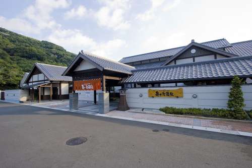 メロディーラインから見下ろすと桜の咲く山に囲まれた入江のように見える亀ヶ池。土砂により海と切り離された潟湖(せきこ)の亀ヶ池には、畳八畳もある大きなカニが住んでいたという伝説が殘る。湖畔の亀ヶ池溫泉(伊方町健康交流施設、寫真下)は四國最西端に位置する溫泉で、日帰り入浴や地元の食材を使った食事が楽しめる。この春には簡易宿泊施設もオープンした。