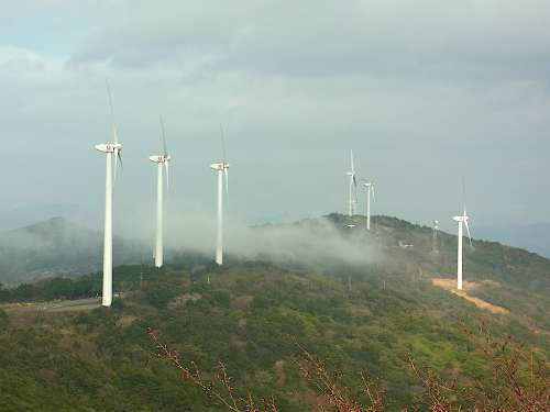 伊方町は遮る物なく吹く佐田岬の強い風を資源として利用するために風車発電を進め、60基(現在58基が完成)の風車が計畫されている。青い海と空を背景に白い風車が緑の尾根に並び建つ様子は、クリーンエネルギーの町、伊方町を象徴する風景となっている。9基は大和ハウスグループが建設、運営している。