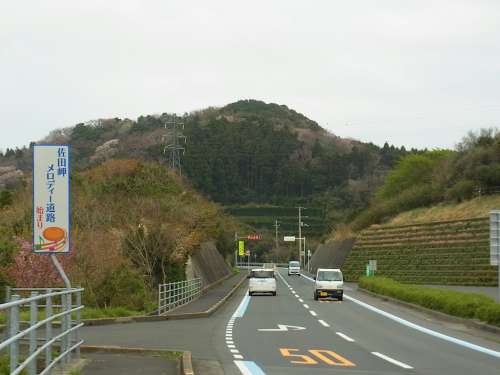 この日はロイヤルシティ佐田岬リゾートも濃い霧の中。現地の散策は早めに切り上げ、喜多郡內子町にあるシダレザクラを見に行くことにしました。分譲地から八幡浜市方面に向けて走っていると、『みかんの花咲く丘』のメロディーが。道の駅瀬戸農業公園の前に設置されているメロディー道路です。一緒に鼻歌を歌いながら道沿いの樹に絡み付いたアケビの寫真を撮っていると、笑ってしまいそうな調子の外れたメロディーも聞こえてきました。制限速度を守り一定の速度で走らないと音癡になってしまうそうです。安全運転で気持ち良い『みかんの花咲く丘』を奏でましょう。