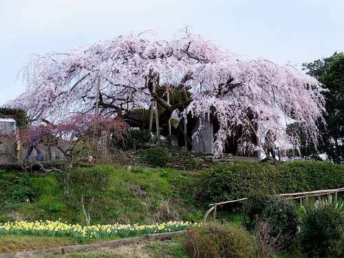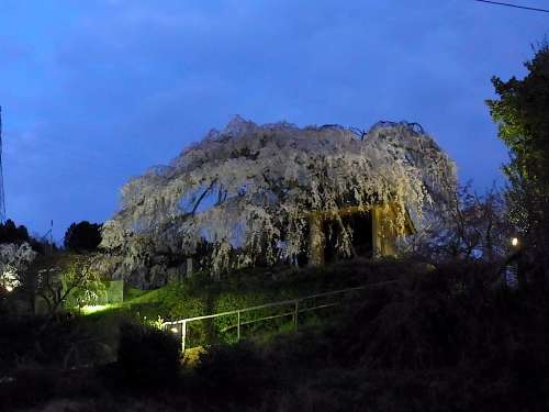 愛媛県指定天然記念物。樹齢推定250年以上。樹高5.5m、枝張り東西約14m、南北約15m。エドヒガンザクラの変種。臺風で主幹が折れる前は高さ20m近くあったという。地元の人々に守られ、開花時にはライトアップされる。喜多郡內子町石畳東地區。