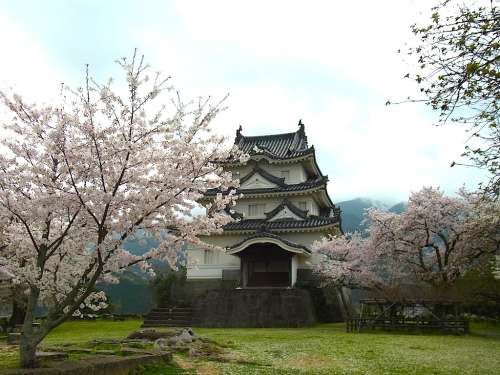 國重要文化財(現存する12天守のひとつ) 『伊達十萬石の城下町』宇和島市市街地の中心、標高約80mの小高い山の上に慶長6年(1,601年)『築城の名手』藤堂高虎による創建された。不等辺五角形の城郭の2辺は海に面した海城だったが、海も堀も埋め立てられ今の姿に。現在の天守は三重三階総塗籠式層塔型で伊達宗利の時代に大修理が行われ1,671年に完成した。城山は300年以上火災や伐採をまぬがれた貴重な植物を含め450もの種類が生育するという。