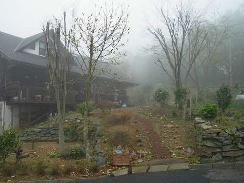 N様のガーデニングのお師匠さんであるお向かいのO様邸には何度か伺ったことがありますが、こちらも大きな樹の太い枝が少なくなって、以前とはずいぶん雰囲気が変わっていました。海も見えるようになったそうですが、殘念ながら霧の中。陽が當たる場所が増えたので、足元を埋め盡くすように咲いているタチツボスミレの群落がさらに増えそうです。