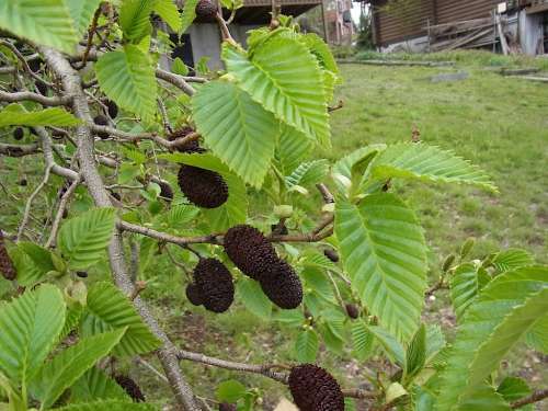 ■右:オオバヤシャブシ(大葉夜叉五倍子、大葉夜叉付子)カバノキ科ハンノキ屬