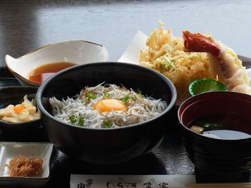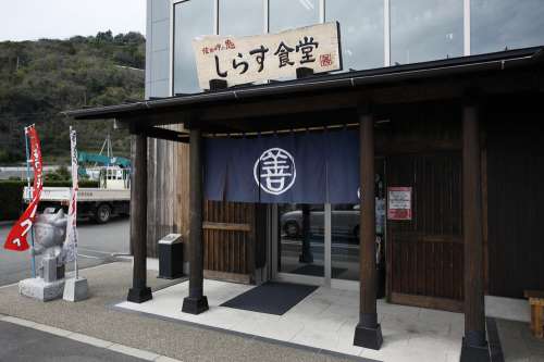 宇和海に面した伊方町川之浜にある『しらすパーク』は、加工作業や細かい異物を取り除く作業などを見學することができる。併設された『しらす食堂』では、新鮮な生しらすや、ふっくらとした釜揚げしらすがたっぷり乗ったしらす丼を海を見ながら食べることができる。寫真は生しらすと釜揚げしらすの2色丼。