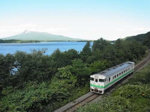 ■左:大沼(H25年9月撮影) 大沼と駒ヶ岳 府道338號(hào)と並走する函館本線(xiàn)。 ■右:ミルクロードからの駒ヶ岳 蝦夷駒ヶ岳、渡島(おしま)駒ヶ岳とも呼ばれる。かつては富士山のような円錐形をした1,700mほどの火山だったため、渡島富士という別名もある。駒ヶ岳の南麓の一部と大沼一帯が含まれる七飯(ななえ)町には駒ヶ岳のビューポイントがたくさんある。牧草地の間のミルクロードからは左に最高峰の剣ケ峯(1,131m)、右は砂原(さわら)岳(1,112m)、わかりにくいが手前に馬の背(892m)。