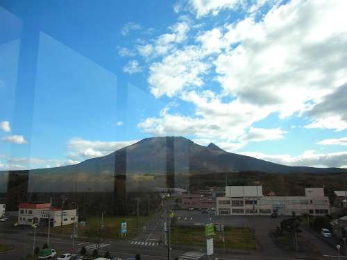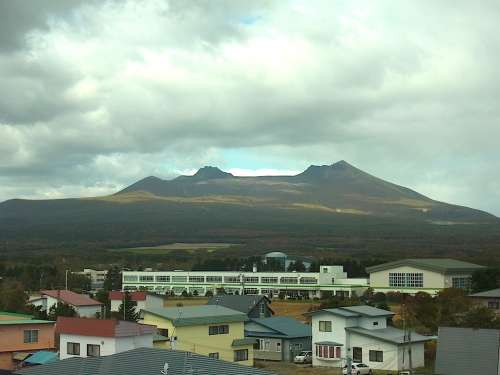 大沼公園鹿部線(xiàn)で鹿部町に入ると林が途切れ牧草地の先に駒ヶ岳が見(jiàn)える場(chǎng)所がありました。鹿部溫泉観光協(xié)會(huì)が発行している『駒ヶ岳ビューポイントマップ』に紹介されている町內(nèi)11ヶ所のビューポイントにもあげられている場(chǎng)所です。ここからは左から馬の背、剣ケ峯、砂原岳の順になりました。 次は鹿部町役場(chǎng)の展望臺(tái)(平日?qǐng)?zhí)務(wù)時(shí)間のみ見(jiàn)學(xué)可能)へ。観光推進(jìn)室に立ち寄ってから3階に上がると、鹿部の街並の先に駒ヶ岳が橫たわっています。鹿部町は東が海、西が駒ヶ岳なので、海から昇る朝日と駒ヶ岳に沈む夕陽(yáng)のどちらも見(jiàn)られるそうです。