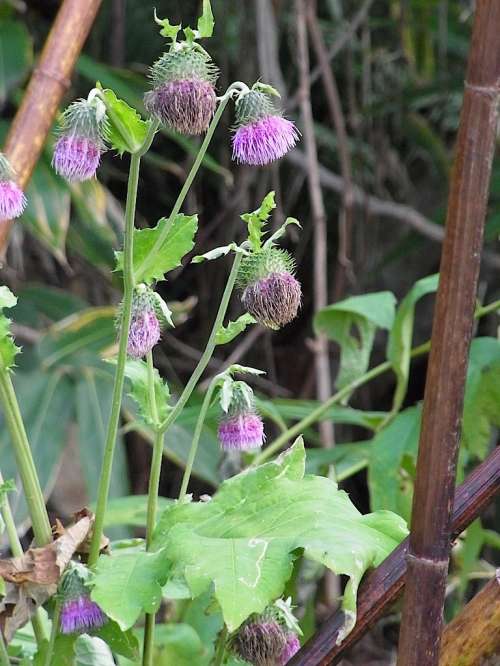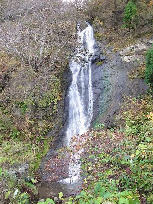 ■左:三味線(xiàn)滝 落差約20m。名前の由來(lái)は、流れ落ちる音が三味線(xiàn)の音色に聞こえることからという説や、三筋の糸のように流れ落ちていたことからという説がある。冬には滝の周辺が凍りつき美しい造形美を見(jiàn)せる。 ■右:サワアザミ(沢薊) キク科アザミ屬 北海道南部から本州の近畿以北(日本海側(cè)に多い)の沢沿いなどに生育する多年草。日本固有種。8~9月に紅赤紫色の花を下向きにつける?;à蜗陇?~6個(gè)の苞葉をつける。葉が大きく長(zhǎng)さ50~60cmほどになり羽狀に深く切れ込む。刺は少ない。名前は沢に生育することから。アザミは美しい花に惹かれて近づくと刺があるので、「あざむ」が転訛したという説や、「あざ」(刺を意味する)と「み」(実)からという説などがある。食用にされる。