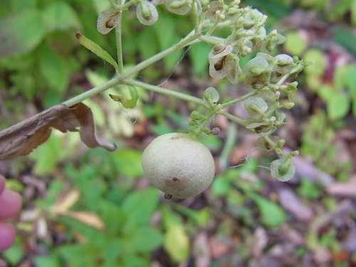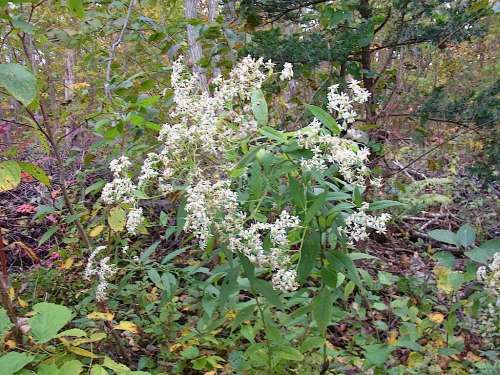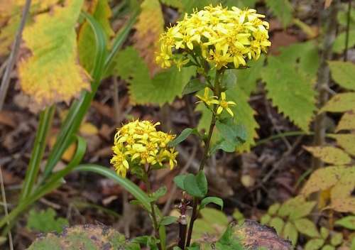 オトコエシにも丸い玉がついていましたが、こちらは実ではなく蟲(chóng)こぶのオトコエシミフクレフシ、中で幼蟲(chóng)が生活しています。わずかですが秋の花も殘っていました。黃色い花はアキノキリンソウに似ていますが、葉が広く花がまとまってつくオオアキノキリンソウです。エゾゴマナの白い花やヒロハクサフジの青紫色の花も見(jiàn)られました。