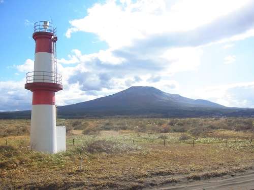 ■左:渡島沼尻駅入り口付近からの駒ヶ岳 沼尻からは剣ケ峯が砂原岳に隠れて見(jiàn)えなくなる。左から東丸(481m)、馬の背、砂原岳。 ■右:砂崎海岸からの砂崎燈臺(tái)と駒ヶ岳 砂崎燈臺(tái)は砂浜に立つ珍しい燈臺(tái)。広い砂地に紅白の小さな燈臺(tái)がポツンと立つ。砂原海岸は渡り鳥(niǎo)の観察ポイントとして野鳥(niǎo)愛(ài)好家達(dá)に人気があり、なかでも個(gè)體數(shù)の少ない最大最強(qiáng)のハヤブサであるシロハヤブサに出會(huì)える場(chǎng)所として知られる。シロハヤブサは北海道新幹線(xiàn)車(chē)輛に描かれているシンボルマークのモチーフになっている。