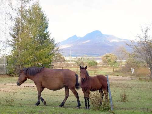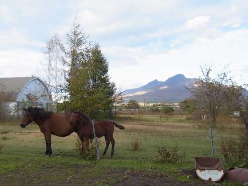 最後に駒ヶ岳の西にあるシャロレー牧場(chǎng)に立ち寄ってみました。恵山國(guó)道から大沼國(guó)道に入る辺りでは砂原岳と剣ケ峯が雙子山のように並んで見(jiàn)えていましたが、この辺りからは剣ケ峯が手前に大きく見(jiàn)え、砂原岳が尖った形に変わります。シャロレー牧場(chǎng)は歴史のある牧場(chǎng)で道産子の保全も行っているそうです。大きく澄んだ目をした馬達(dá)は人によく慣れていて穏やかな性格なので、柵に近付くと次々と寄ってきます。この牧場(chǎng)の魅力は駒ヶ岳を眺めながら100萬(wàn)坪の広大な敷地をホーストレッキングできること。想像しただけでも気持ちが良さそうです。乗りたかったのですが時(shí)間がなくて斷念。いつか馬上から駒ヶ岳を見(jiàn)てみたいです。