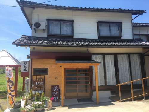 それがこの「のと風(fēng)」。 東京暮らしの経験をもつ店長(おそらく30代)が、実家に里帰りして開いたお店です。親御さんが美容院を経営しているらしく、塀のない敷地に一戸建てそのままという外観の美容院とレストランが並んでいます。 (のと風(fēng)さん外観)
