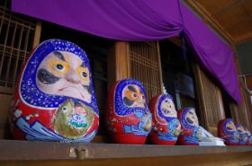 (寫真右)神棚に飾られている、仙臺の工蕓品「松川だるま」