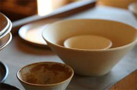 (寫真右)石州瓦と同じ製法でつくられるオリジナルの瓦食器。手掛けるのはベテランの瓦職人たち