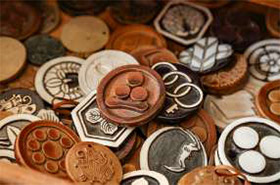 (寫真左下/右下)家紋のペーパー ウェイト、鬼師が手がける鬼瓦。すべて手作業なので、いろんなリクエストに応えられる。使い手の聲を聞きながらより良いものづくりを目指している