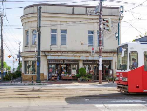 函館市末広町に広がる、通稱「十字街」と呼ばれるエリア。市電「十字街」停留所の目の前には、そこだけ時(shí)が止まったままのようなノスタルジックなたたずまいの建物が殘っています。ここは「舊梅津商店」があった場(chǎng)所で、十字街が函館経済の中心地域だった時(shí)代に、當(dāng)時(shí)はまだ珍しかった洋物の酒類や食品を扱っていた食料品問(wèn)屋事務(wù)所として使われていました。