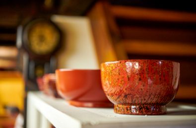 漆器づくりは、木地づくり、漆の塗り、蒔絵や螺鈿を施す加飾まで、分業制で行われてきました。マルサ漆器製造所ではあくまでも塗りが中心ですが、木地づくりから加飾まですべてを行いながら、マルサ漆器製造所獨自の漆器をつくり続けています。達夫さんは作品づくりにも精力的で、日本伝統工蕓展では8回入選。一般的な商品をつくる上でも、作品出展はプラスに作用し、盃や馬上杯、盛り付け用途の幅広い長角皿まで、さまざまなデザインの漆器をつくるようになったと語る達夫さん。お店には、マルサ漆器製造所ならではの漆器を楽しみたいというファンも遠方から訪れるそうです。