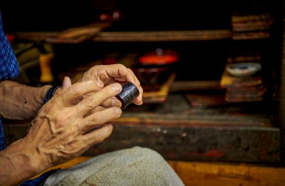 漆は、植樹から15年経たないと採取できない非常に貴重なもの。特に日本で採れた漆は塗った後も劣化しにくく、長く使うほど器自體を硬くする作用があるとか。木地の木目をより美しく見せ、黒や赤の色に深みや透明感を持たせ、蒔絵などの裝飾をさらに見栄え良くする。何度も塗り重ねる作業に、職人の腕が試されます。「一つひとつ階段をのぼるように、ミスをしないように確認しながらやっていかないといけない仕事。偶然の産物は期待できないので、丁寧な仕事を重ねていくだけです」と達夫さんは語ります。