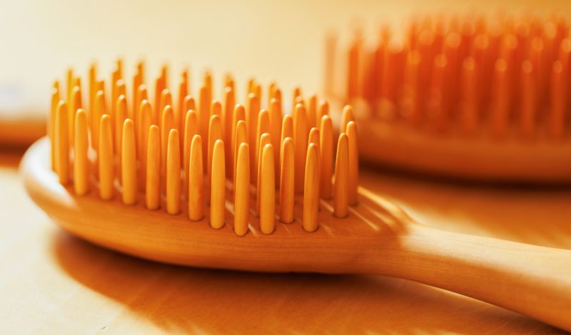 直徑約20cmの幹が育つまで40~50年かかるといわれるつげ。成長の遅さは、『木のダイヤモンド』と呼ばれるほど硬くて粘り強(qiáng)い木質(zhì)を育みます。繊細(xì)な加工をしても割れが少ないことから、昔から櫛だけでなく將棋の駒にも使われてきました。別府つげ工蕓では、國産つげの中でも最上種の鹿児島県産『さつまつげ』をブラシの歯に採用。髪にブラシを通すと、頭皮を優(yōu)しくマッサージしてくれるような心地よい感觸を味わえます。髪質(zhì)や髪量、使い心地に合わせて選べる3種類のブラシがありますが、歯の太さは一緒。歯の高さや向き、歯と歯の間隔が変わるだけで、髪どおりや頭皮の感觸も一変するから不思議です。
