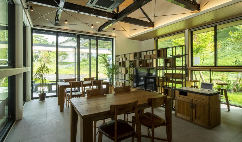 山からウグイスやホトトギス、ヒグラシの聲が聞こえる杵築シェアサロン。カフェをイメージした落ち著いた空間に、古材でつくられた溫かみを感じるインテリアをレイアウト。事前予約の必要もなく、散歩やウォーキング途中の休憩所として、ご友人との語らいや趣味の集まりに、読書や勉強のひとときにと、使い方はオーナーさま次第。自由に閲覧できる新聞や本も設置しているほか、無料でご利用いただけるコーヒーサーバーもご用意しています。フリーWi-Fiを完備しているので、ご自宅でのリモートワークで少し気分を変えたいときや、リモート會議にも気軽にご利用いただけます。また、萬が一に備え、太陽光発電と停電時に可動するリチウム電池を設置しています。