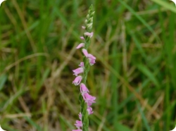 今回は「高千穂カントリー倶楽部」のコースの間に広がる、木々が多いV街區(qū)とR街區(qū)を歩いてみました。タブノキやカシの仲間などの常緑樹とクマノミズキ、カラスザンショウなどの落葉樹、アカマツ、ヒノキなどの針葉樹が混ざる林で見つけたのは、ブドウのように垂れ下がったキブシの果実です。近くには赤く熟したナワシロイチゴの果実も。足元では、ネジバナがらせん狀に小さな花を付けていました。