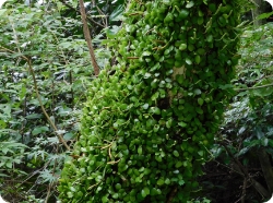 常緑のシダ植物。樹木や巖に著生する。ヘラ狀に伸びているのは胞子葉