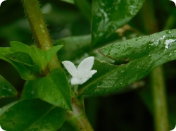 歩き進(jìn)めると視界が開け、雲(yún)をかぶった桜島がうっすら見えました。天気が良ければ雄大な桜島の姿を望むことができる場所です。霧島は名前の通り霧の多い地域。そのためかシダ植物のマメヅタが幹にびっしり生えている木を多く目にします。他にも正月飾りに使われるウラジロやコシダ、ゼンマイなど多種のシダが見られます。側(cè)溝をのぞくとサワガニが。近くにある小さな滝から來たのかもしれません。さらに進(jìn)むと何種類かのスミレが生えている場所がありました。シハイスミレ、ナガバタチツボスミレ、フイリフモトスミレなどでしょうか。スミレの葉を観察していると目の前にジャコウアゲハが。忙しく飛び回る後を追うと、幼蟲の食草であるウマノスズクサの葉の裏側(cè)に卵を産み付けていました。葉の裏には、いろいろなものが隠れています。サルトリイバラの葉の裏側(cè)では、ルリタテハの幼蟲が食事中。やがて瑠璃色の帯模様が入った黒褐色のチョウに変身します。帰り道の濕った場所ではメリケンムグラが群生し、小さな白い花を咲かせていました。
