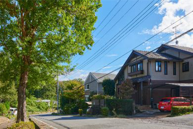 ダイワハウスの森林住宅地において、最初に販売を開始したのがここ、栃木県那須烏山市に広がる南那須?大金臺林間住宅地です。1973年(昭和48年)の販売開始から約半世紀を迎えた成熟の住宅地で、豊かな里山の景色とも馴染み、落ち著いた雰囲気に包まれています。この住宅地では、道路の清掃作業などの日常的な巡回業務のほか、経年によって変化した環境の整備が順次進行中。枯れ木や高木の伐採、汚水処理施設の改修工事などを段階的に進めています。