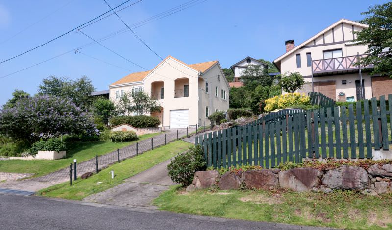早朝や夕方には、ワンちゃんの散歩やウォーキングを楽しまれているオーナーさまをよく見かけます。潮風に強いミモザをシンボルツリーに、ユーカリ、ハナミズキ、ワレモコウ、プラムなど、和洋さまざまな植物を織り交ぜたすてきな庭も多く、歩いているだけで癒やされます。シュロの並木道が続く6街區(qū)の公園は、毎年10月中旬頃、フジバカマの蜜を求めて飛來するアサギマダラの群れでにぎわいます。フジバカマの白い花と、その名の由來になった淺蔥色のアサギマダラが描く光景は、別府灣杵築リゾートの秋の風物詩。北側(cè)の高臺にある公園でも、アサギマダラに羽を休めてもらおうと、フジバカマの植栽活動が始まっています。