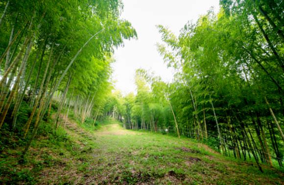 竹林公園に広がる竹林広場。竹の葉擦れの音が心地よく響いています