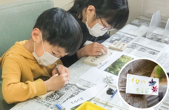 皆さんとつくった木々のネームプレート。ぜひ見つけてみてください
